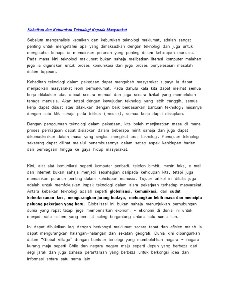 Kebaikan Dan Keburukan Teknologi Kepada Masyarakat Pdf